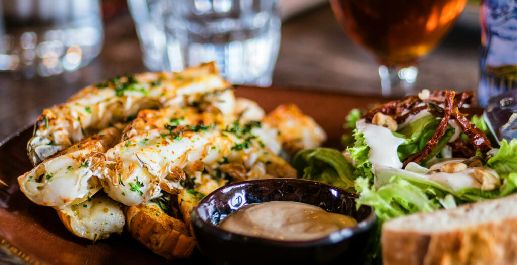 A chef is cooking in his restaurant's kitchen. Shot through the glass. High-end gourmet restaurant.