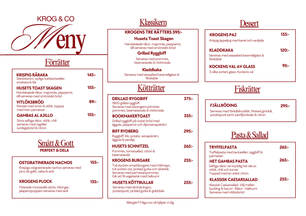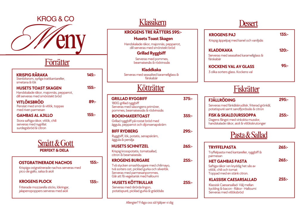 Boka ditt besök på Krog & Co Ljungby.